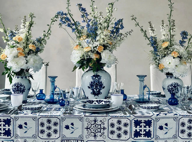 A unique linen napkin design that merges the beguiling beauty of traditional Portuguese Azulejos tiles with signature Summerill & Bishop artistry.