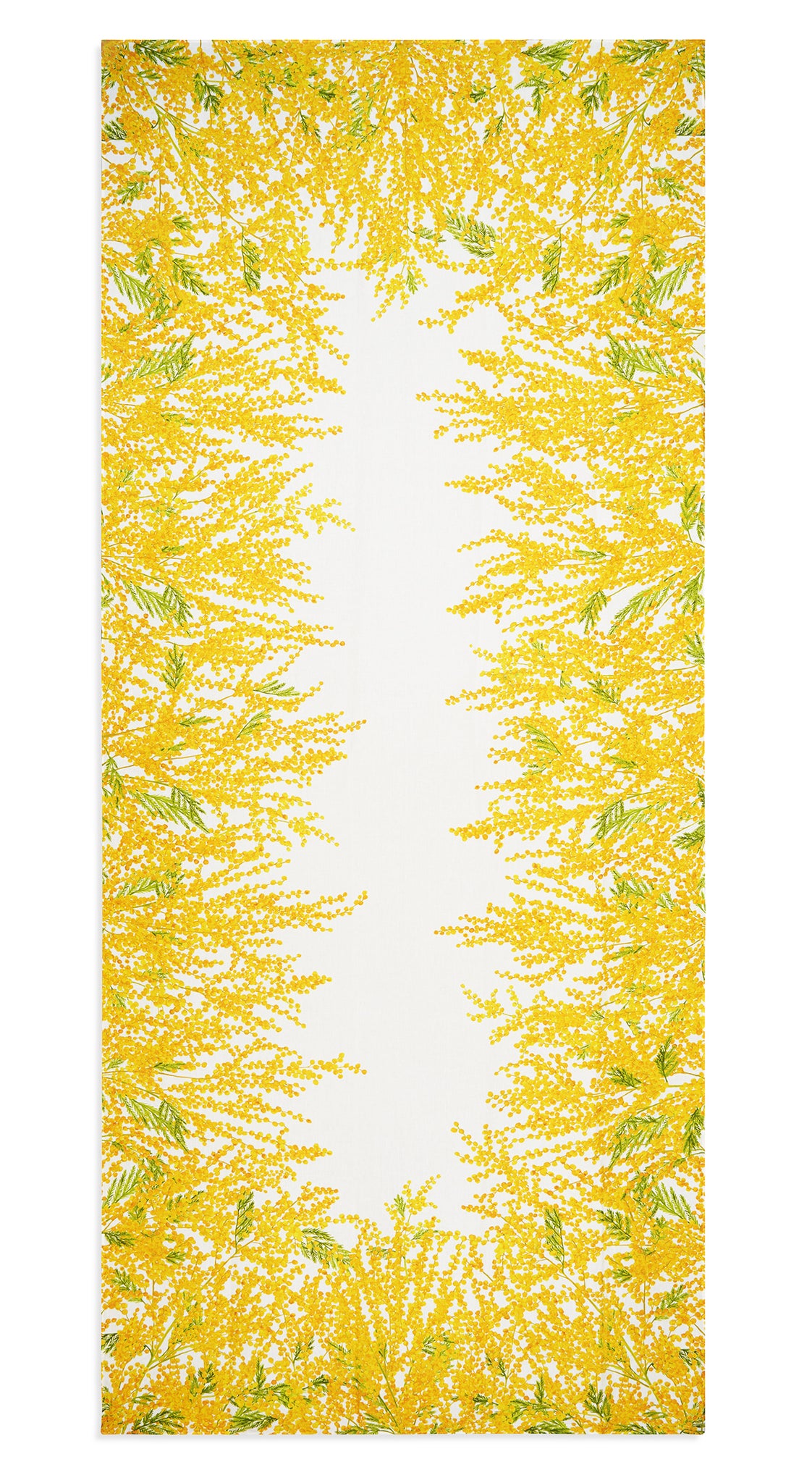 Mimosa in full bloom embellishes this 100% linen tablecloth and napkins. A glorious design to embrace the height of summer outside or inside at the table with your family and friends.