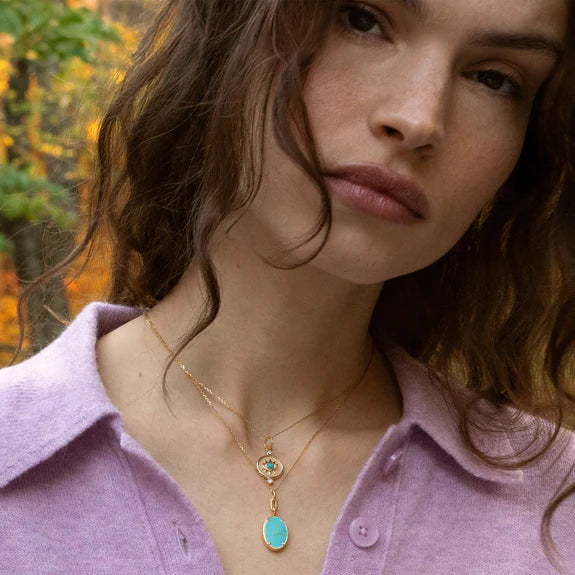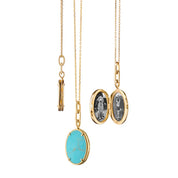“Elle” Turquoise Stone Slim Locket Necklace - 18K Yellow Gold