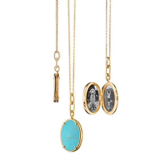 Meet "Elle". Slim, fresh, and modern with a turquoise stone front and streamlined side profile that is barely there. It's the locket you will never take off.